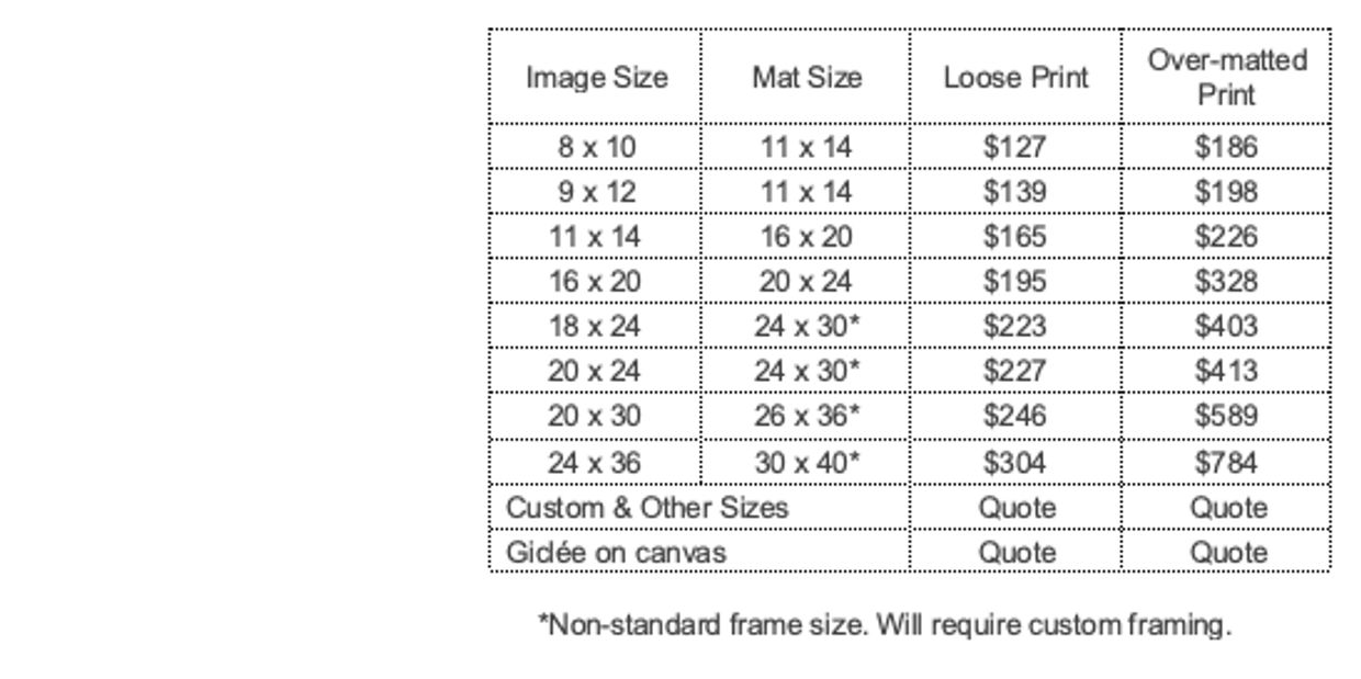 Duane Photography Numbered Edition giclée prints are produced using archival pigment inks and 100% cotton rag acid-free paper. These prints will remain fade-free for decades providing they are properly cared for. Prints may be ordered in many sizes but not all of my digital negatives will crop well to every size so it is best to contact me to discuss options. All giclée prints include a signed Certificate of Authenticity that uniquely identifies your print and shows you as the lawful owner.